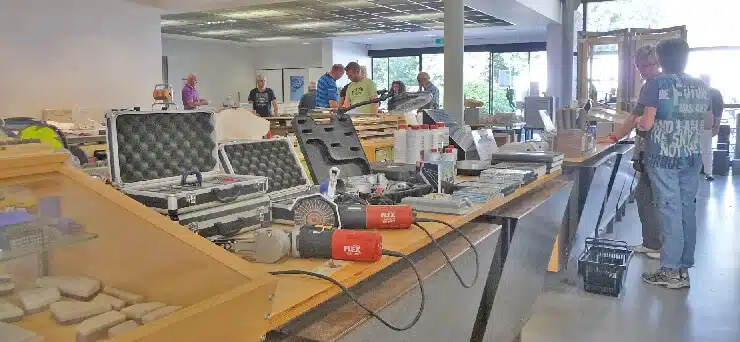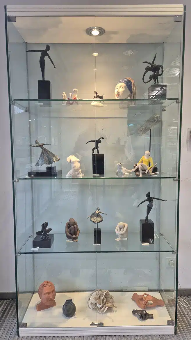 Bij de ingang van onze winkel in Soest staat een vitrine, waarin onze klanten hun werk kunnen tonen. Om de 4 weken wisselt de vitrine van werk.