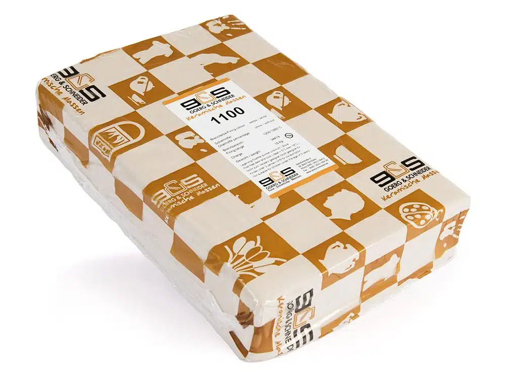 De G&S 1100 is een extra witbakkende klei zonder chamotte en wordt geleverd in een verpakking/brood van 10 kg.