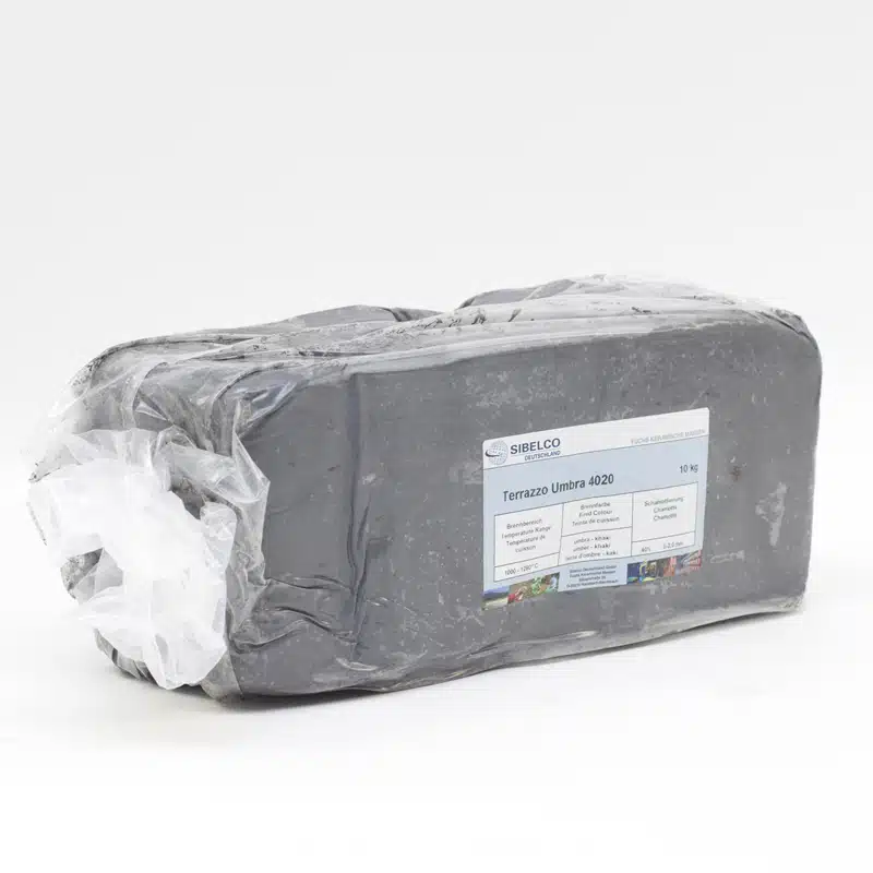 De Sibelco Terrazzo 4020 Umbra is een boetseerklei met 40% grove chamotte; de kleur na het bakken varieert tussen geel tot kaki geel afhankelijk van de hoogte van de stooktemperatuur. Wordt geleverd in een verpakking/brood van 10 kg.
