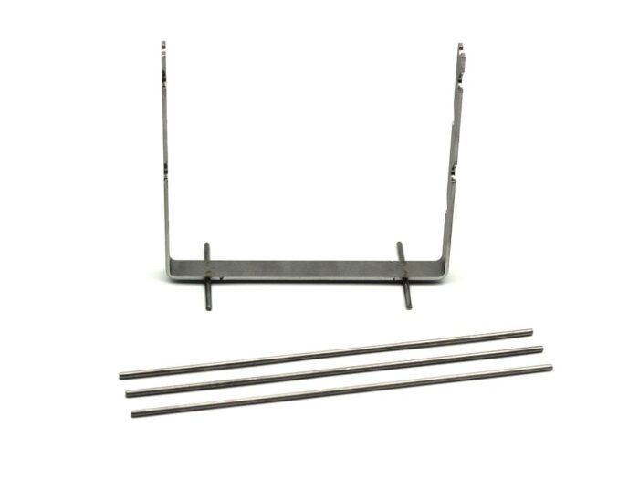 Een standaard voor het stoken van kralen of hangers in een keramiek oven. Het hoogwaardige RVS is bestand tegen temperaturen tot 1250 ºC, maar des te hoger er gestookt wordt, des te minder kunnen de staafjes belast worden. Verdeel de te stoken objecten goed over de volledige lengte van de staafjes en beperk het gewicht om doorbuigen tijdens het stoken te voorkomen.