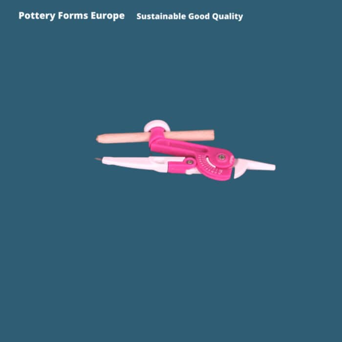 Rim tool – sue passer. De Rim tool is een meetinstrument dat op een makkelijke manier gebruikt kan worden om een lijn te zetten waar de rand van je bord dient te komen. Door het vastzetten van de afstand en de passer op deze manier te gebruiken krijgen alle randen van de borden die je maakt een gelijke breedte.