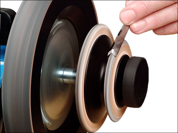 Vervangende wetschijven voor de Tormek LA-120 geprofileerde wetschijven. 1 wetschijf met een radius van 3 mm voor gutsen en 1 wetschijf met een hoek van 60 graden voor v-gutsen.
