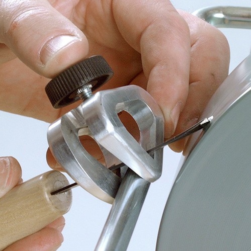 De SVS-38 slijpmal is ontworpen voor het slijpen van kort gereedschap met een rechte schacht. De minimale lengte van het gereedschap is 45 mm bij een slijphoek van 20 graden en de maximale breedte is 38 mm.